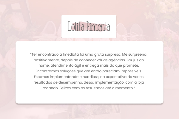 “A parceria com a Imediata tem sido fundamental para a evolução da nossa loja do Seller no Zé. Desde o início, a equipe se mostrou extremamente parceira, acessível e comprometida com nossos objetivos. Sempre prontos para ouvir, propor soluções e colocar a mão na massa, eles se tornaram uma extensão do nosso time, com uma atuação que vai muito além da execução técnica. Com o apoio da Imediata, conseguimos dar um salto significativo na experiência do usuário e nos … resultados da loja. A evolução que tivemos em performance, navegabilidade e estabilidade da plataforma é fruto direto dessa colaboração próxima e constante. Sem dúvida, trata-se de um parceiro estratégico que tem nos ajudado a chegar em um novo patamar. Estamos animados por tudo que ainda faremos juntos!”